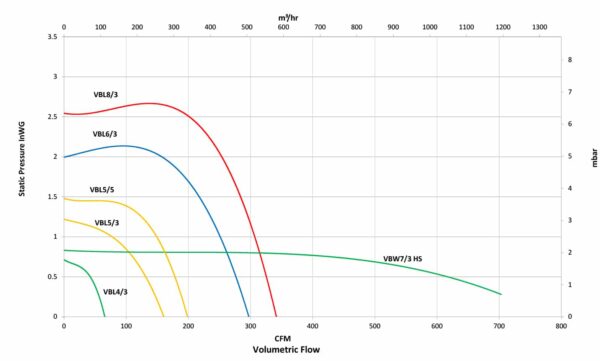 The illustrated curves are for 240V 1Ph 50Hz and for selection purposes only. For full performance details, please click through to the specific data sheets using the links above.
